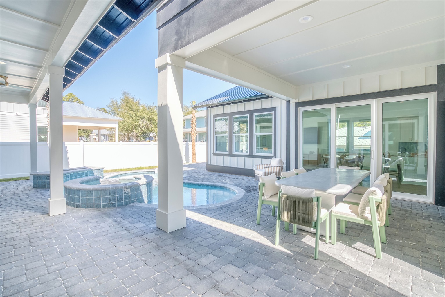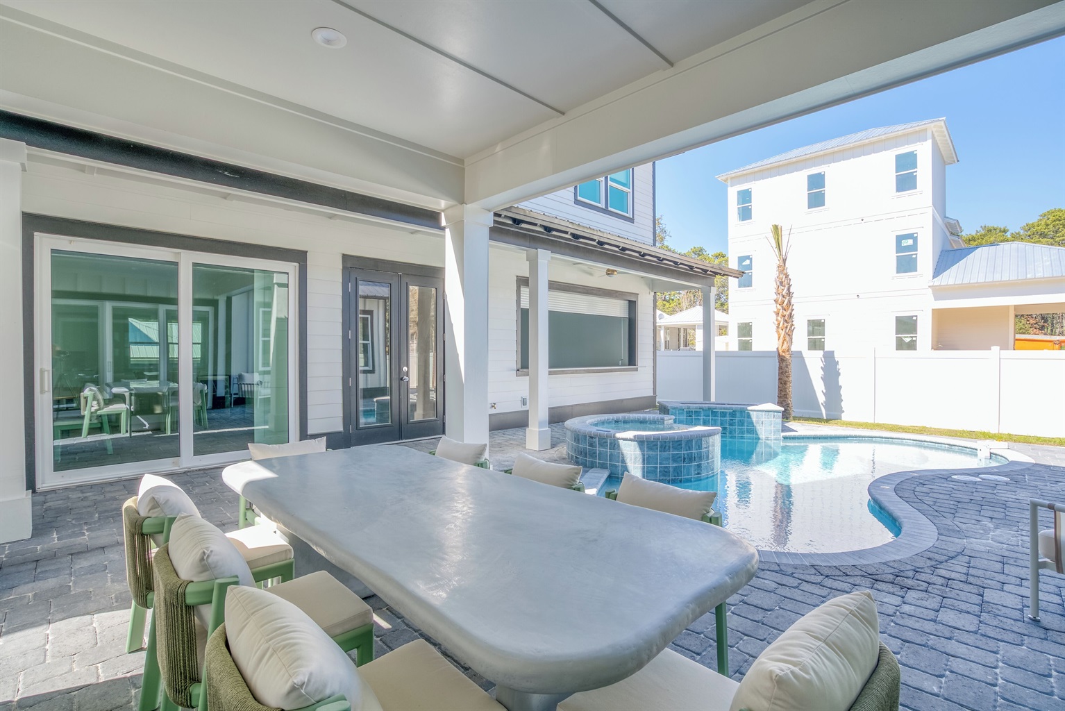 This Brand New 10 bedroom home is nestled along the beautiful beaches of 30A.Located in one of the most desirable areas of 30A, this home boasts a private pool and spa, (pool and spa heat available for an additional fee from October- March only) along with a built in fire pit.
