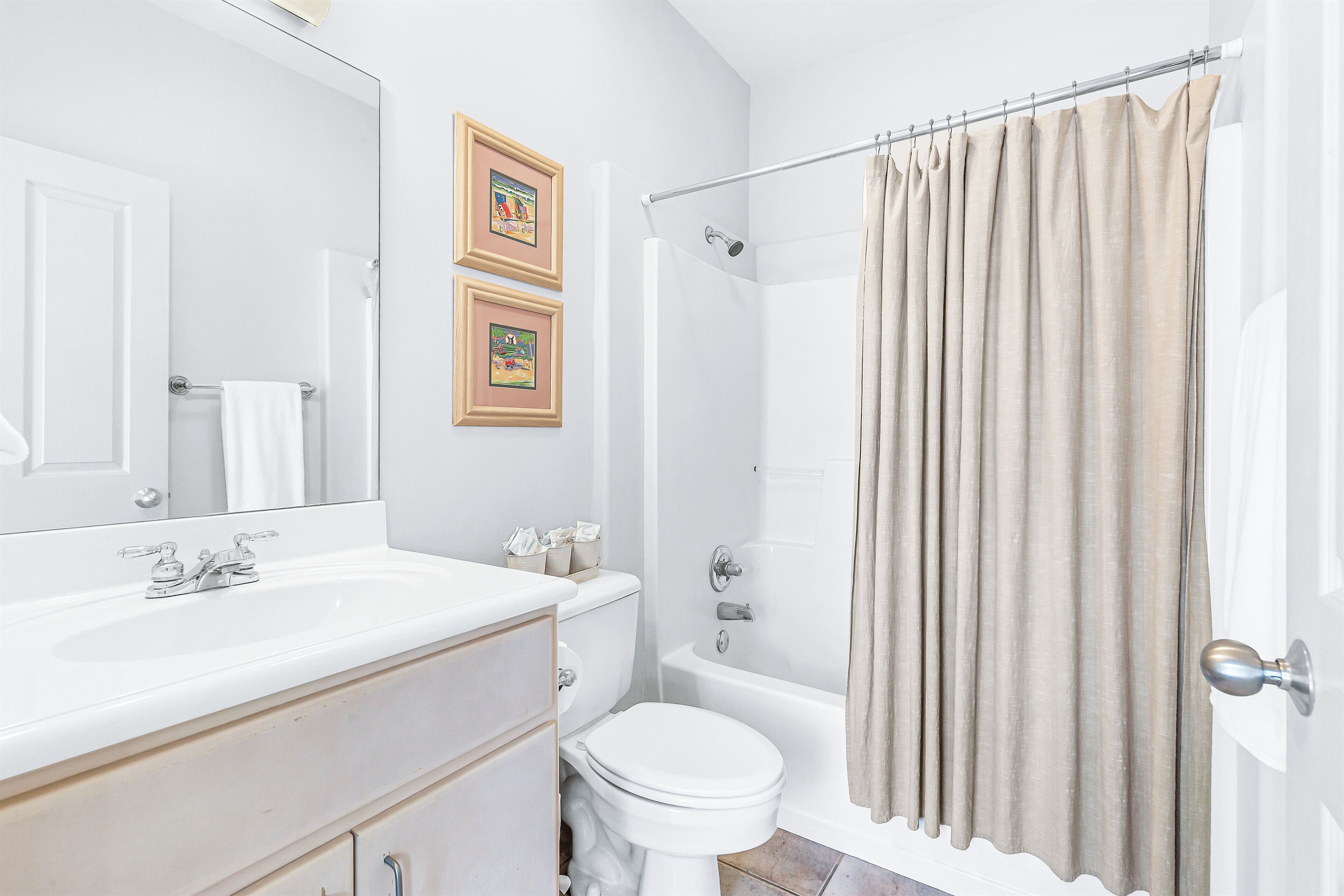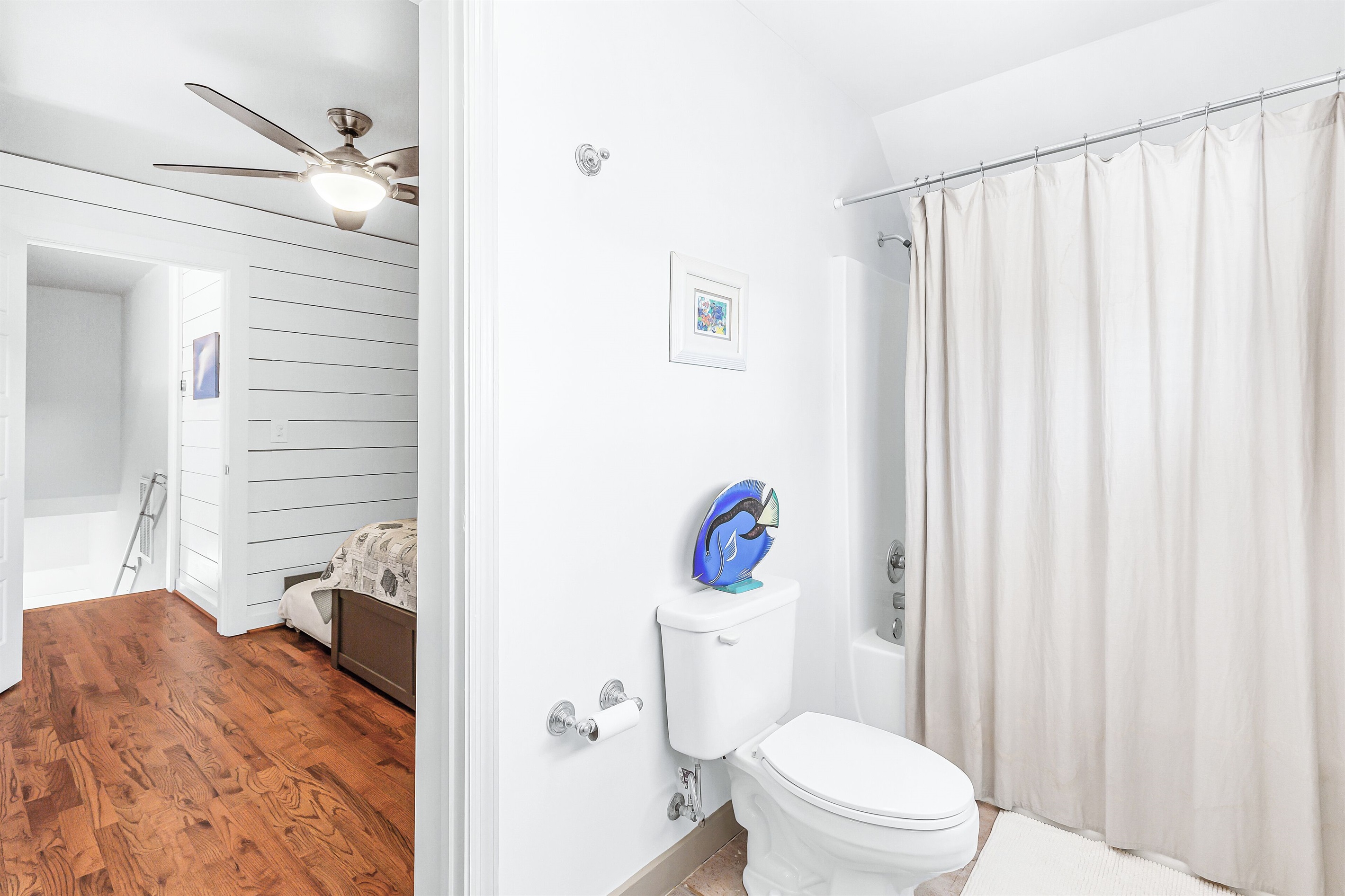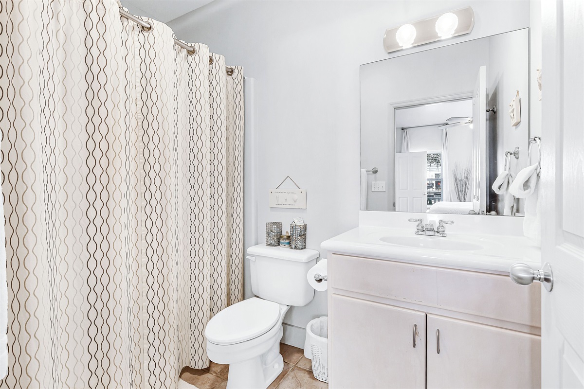- Guest Bedroom: Queen Bed and Twin Trundle, Shared Bathroom with Shower/Tub Combo