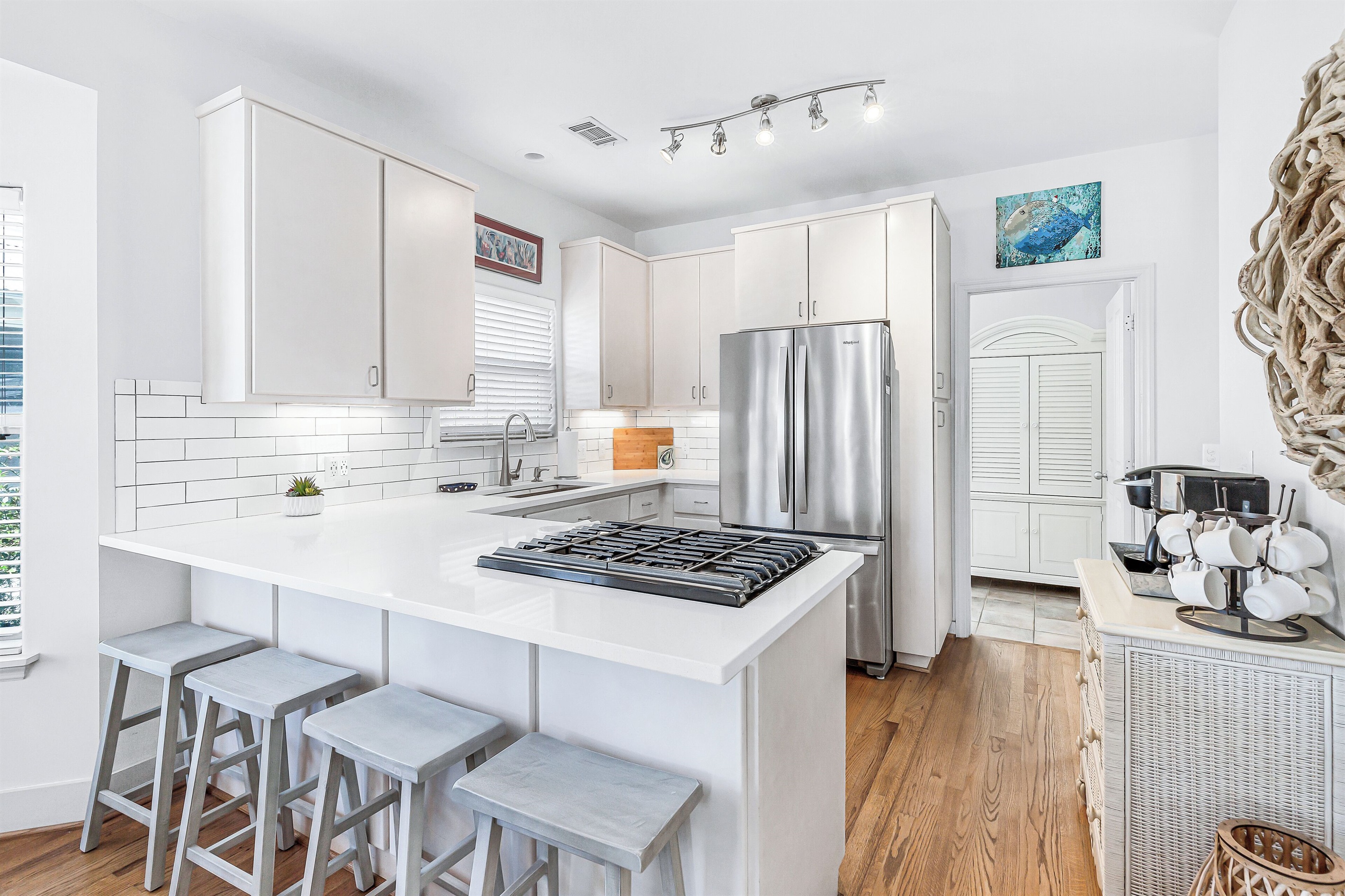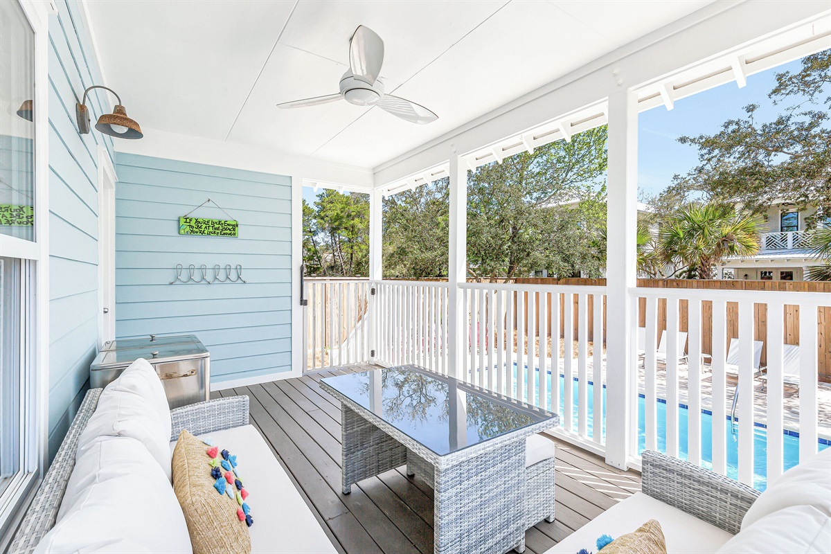 DETAILS: Leave the hustle behind for a peaceful getaway at Luckie Days, a 4-bedroom, 4-bathroom Seagrove Beach home accommodating 10 guests. Tucked along the Emerald Coast, this 2-level home is located a short walk from the Gulf's sugar-soft shores and Eastern Lake. Kayak, paddleboard, or canoe on the calm waters, cruise the Timpoochee Trail, or grab a pair of sunglasses and lay out on the beach. Guests looking for tranquility will love the private pool and beach access, a 5-minute stroll away.