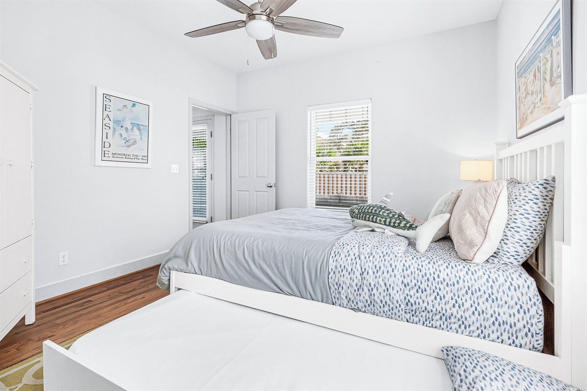- Guest Bedroom: Queen Bed and Twin Trundle, Private Bathroom with Shower/Tub Combo
